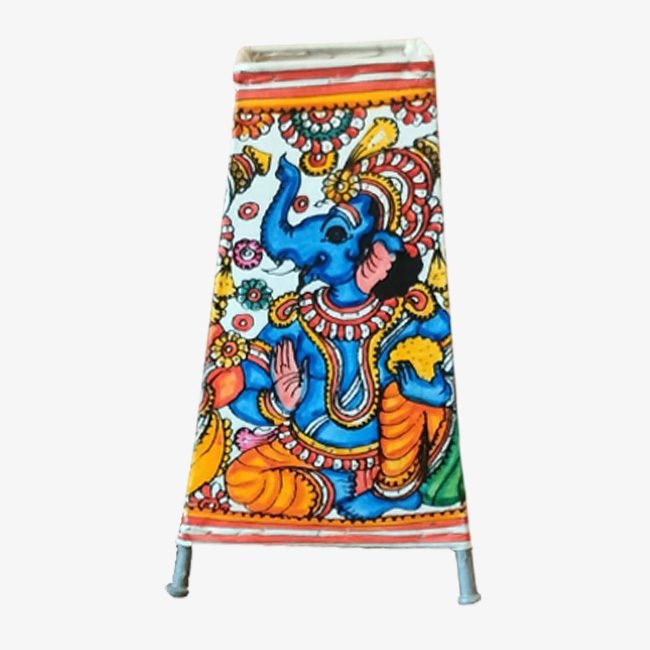 This “Andhra Pradesh Leather Puppetry Lord Ganesh Lampshade” symbolizes wisdom, prosperity, and good fortune, making it a meaningful décor piece or a thoughtful gift for auspicious occasions. A dynamic yet spiritual aesthetic is created by the lamp’s harmonic combination of warm earthy tones with touches of blue, yellow, red, and green. The translucent surface softly disperses light when lit, creating a calming radiance that improves living areas, prayer rooms, and entryways.