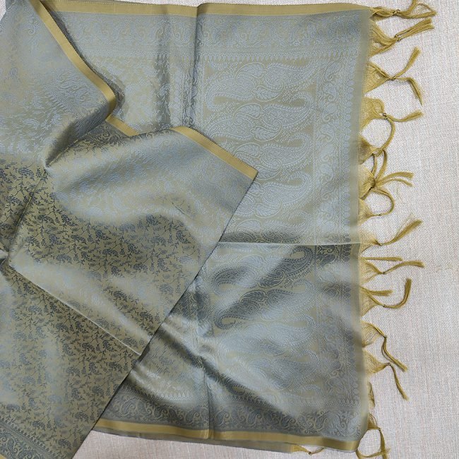 Banarasi Cotton Silk Stole Grey with Golden Border