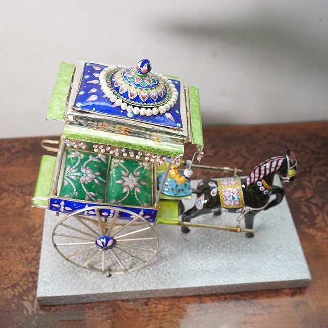 Gulabi Meenakari Horse Cart Showpiece