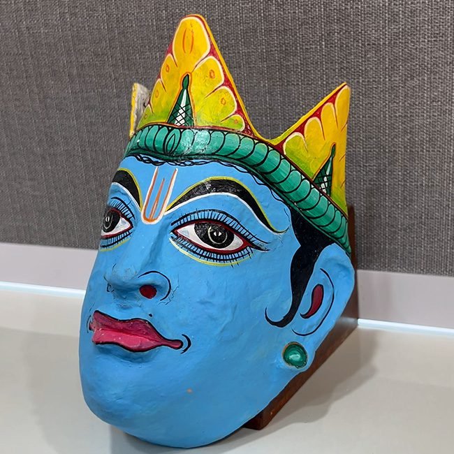 This “Majuli Mask of Assam Lord Krishna Mask” is another divine creation of Majuli’s artisans (Assam). Crafted with natural sourced materials such as bamboo, clay, and cloth, this mask represents Assam’s cultural heritage. Lord Krishna is a major deity in Hinduism, worshipped as the eighth avatar of Vishnu. He is known as the god of protection, compassion, tenderness, and love. Krishna’s story is central to the epic Mahabharata and the Bhagavad Gita.