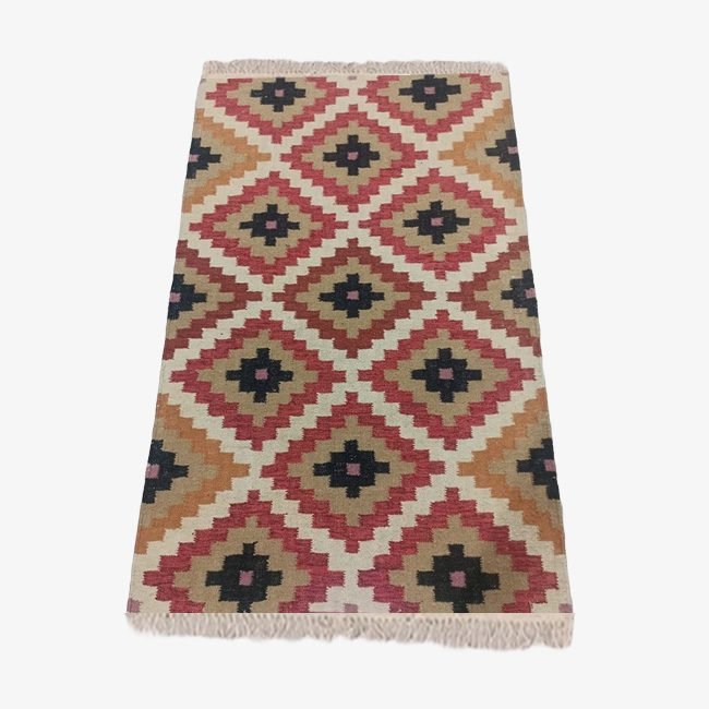 Mirzapur Handmade Dari Geometric Diamond Pattern Kilim Rug