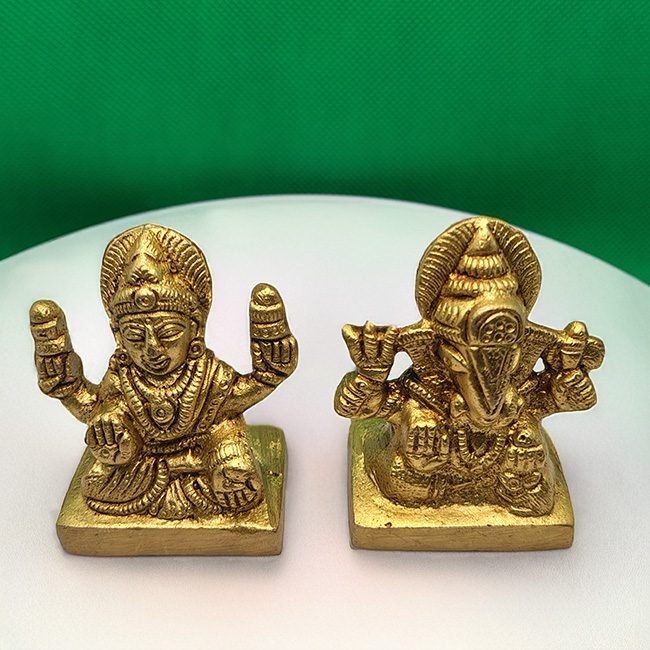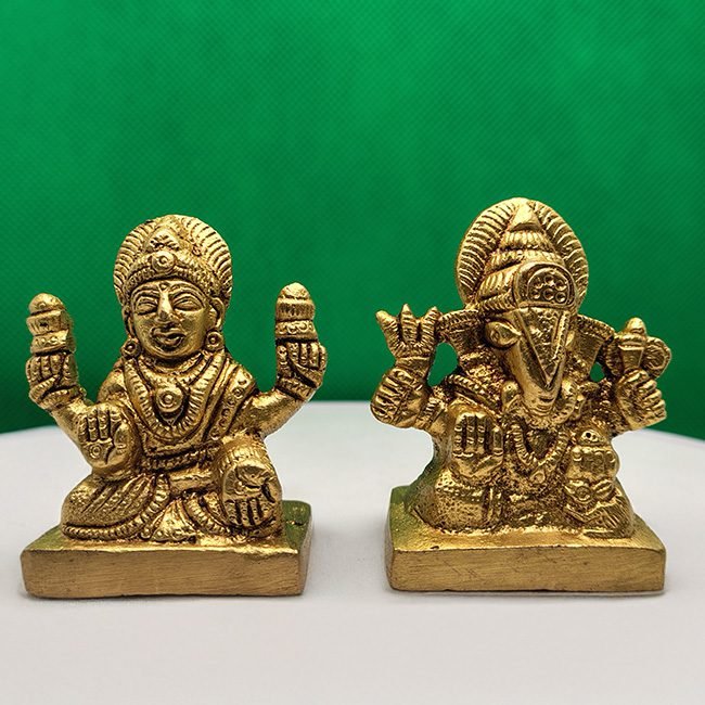 Moradabad Metal Craft Brass Goddess Lakshmi and Lord Ganesha Idol