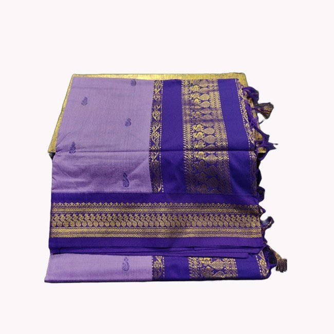 The Paithani silk cotton saree in lavender and violet is a sophisticated blend of tradition and modern elegance, meticulously handwoven by skilled artisans in Maharashtra, India. This saree features a soft lavender base beautifully contrasted with striking black accents, creating a captivating visual appeal. Adorned with intricate zari work and traditional motifs, such as peacocks and flowers, it showcases the exceptional craftsmanship of the artisans. The luxurious silk-cotton blend ensures a comfortable yet elegant texture, making it perfect for both casual and festive occasions. Draping yourself in this Paithani saree is like wearing a piece of art that reflects India’s rich cultural heritage.