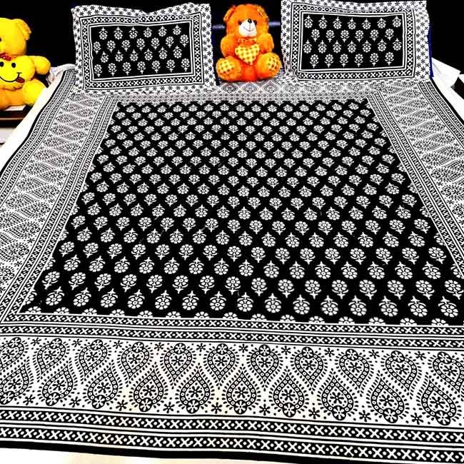 The “Pilkhuwa Hand Block Print Black and White Bedsheet with Pillow Cover Set” is crafted from premium quality cotton fabric, providing a soft, breathable, and skin-friendly feel for everyday comfort. It features intricate hand block print showcases traditional floral motifs in a striking black and white design, reflecting the rich heritage of Pilkhuwa craftsmanship. The set includes matching pillow covers that perfectly complement the elegant pattern. Durable, colorfast, and easy to maintain, this bedsheet is ideal for both daily use and special occasions.