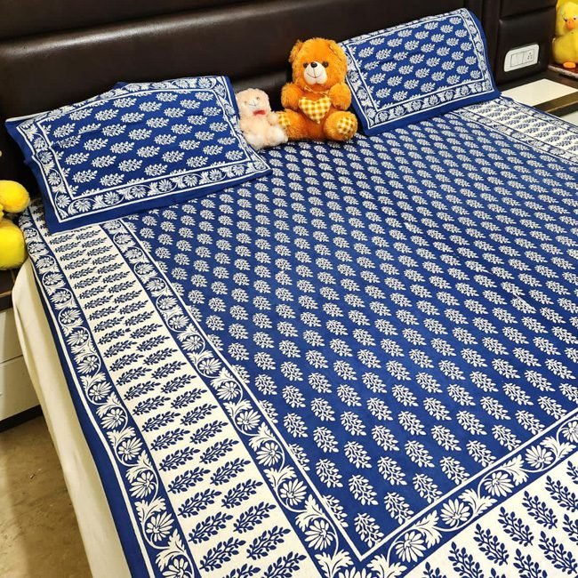 This “Pilkhuwa Hand Block Print Textile Leaf Pattern Bedsheet and Pillow Cover Set” features an elegant leaf pattern design in soothing shades of blue and white. Handcrafted by skilled artisans of Pilkhuwa, each piece reflects intricate block printing that adds a touch of sophistication to your bedroom decor. Made from soft, breathable cotton, it ensures a restful sleep while enhancing your room’s aesthetic appeal.
