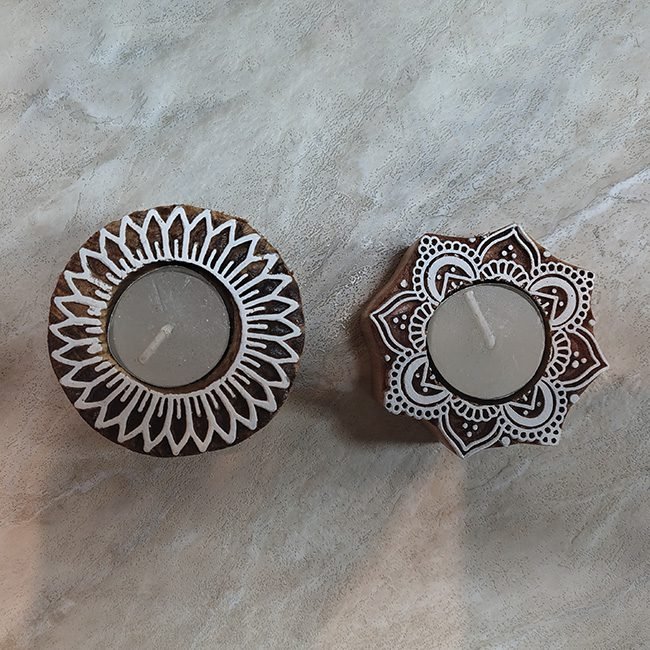 Saharanpur Wood Craft Flower and Circle Shape Candles